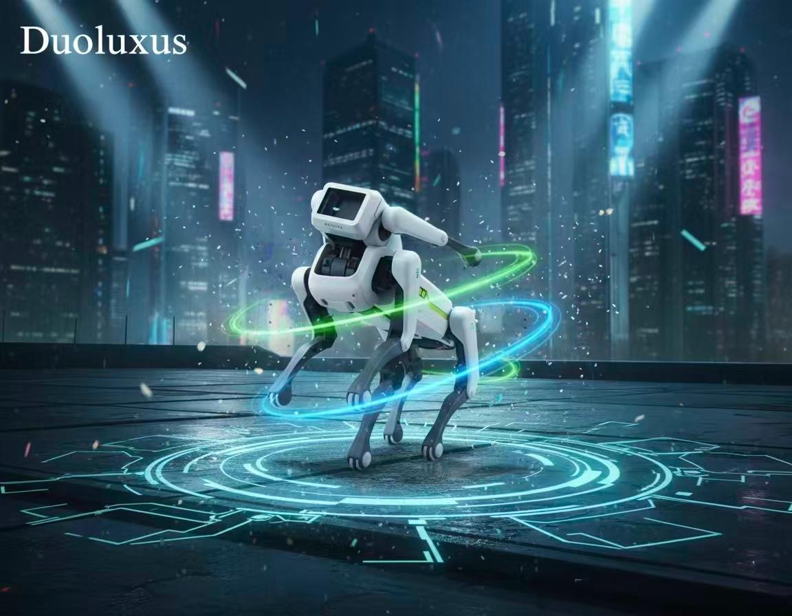 This is a Multifunctional Toy featuring a futuristic, Boston Dynamics-inspired robotic quadruped design that combines interactive pet features with an exciting water-bomb firing action.